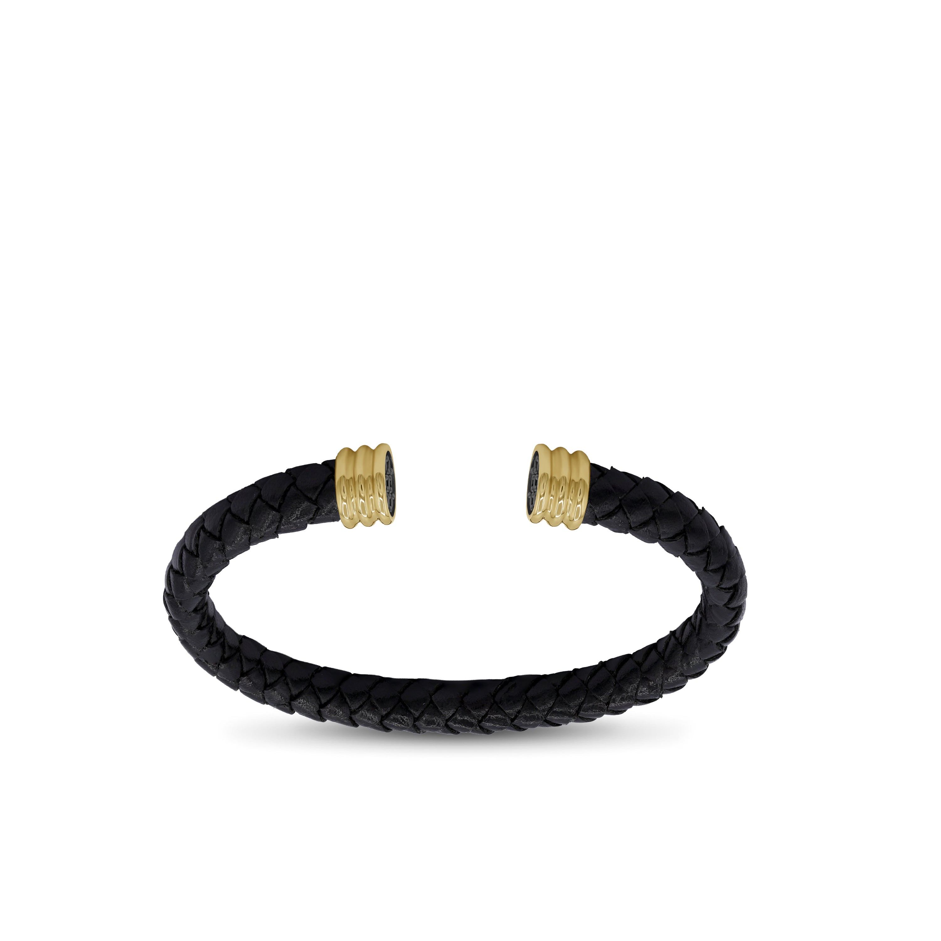 Braided Black Leather Cuff Bracelet with 18K Yellow Gold Ends