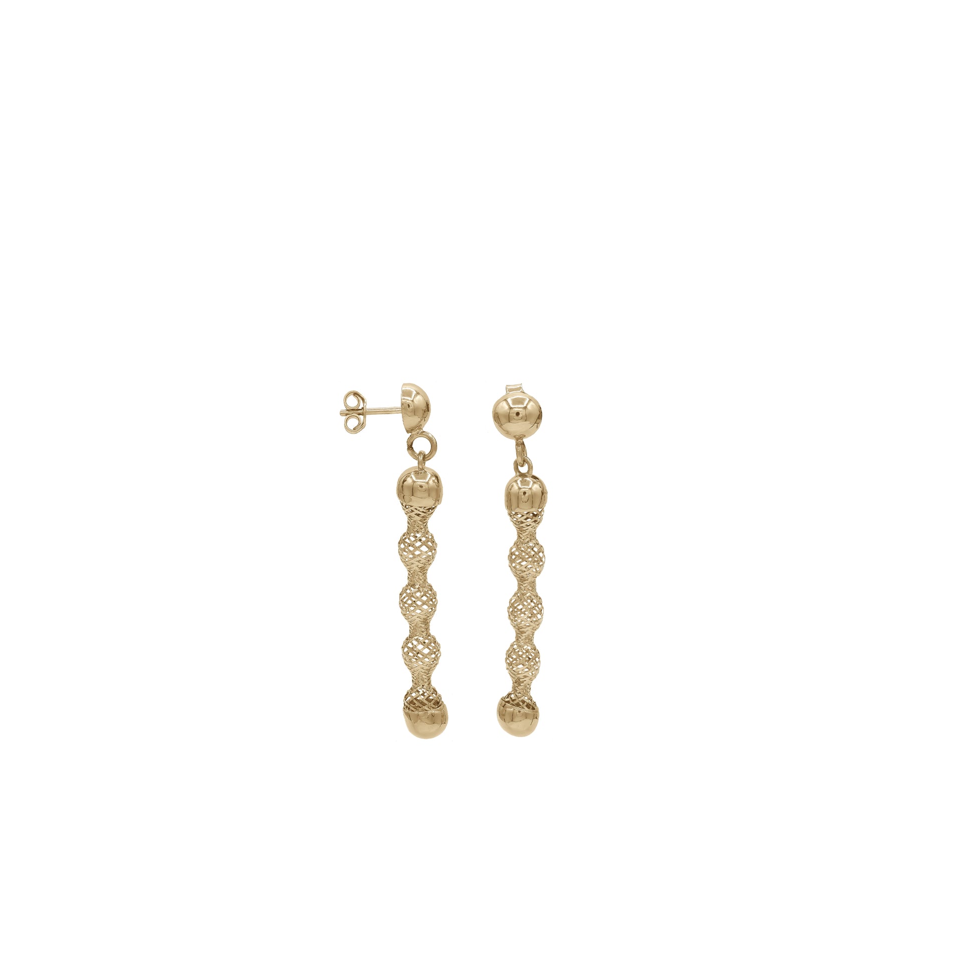 18k Gold Long Beaded Drop Earrings | Elegant Linear Design | Jamal Al Muhra