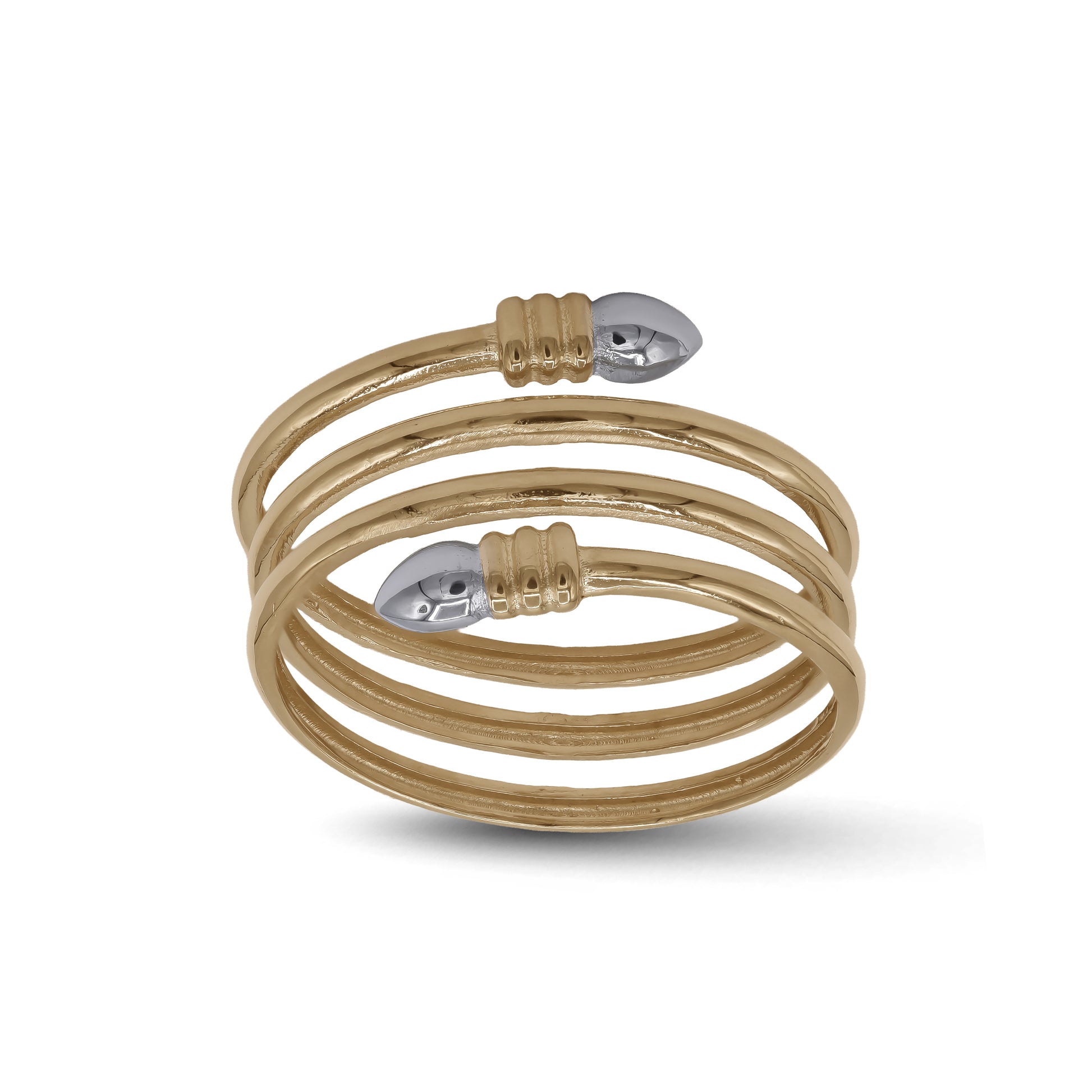 - Elegant spiral wrap design with two-tone gold finish