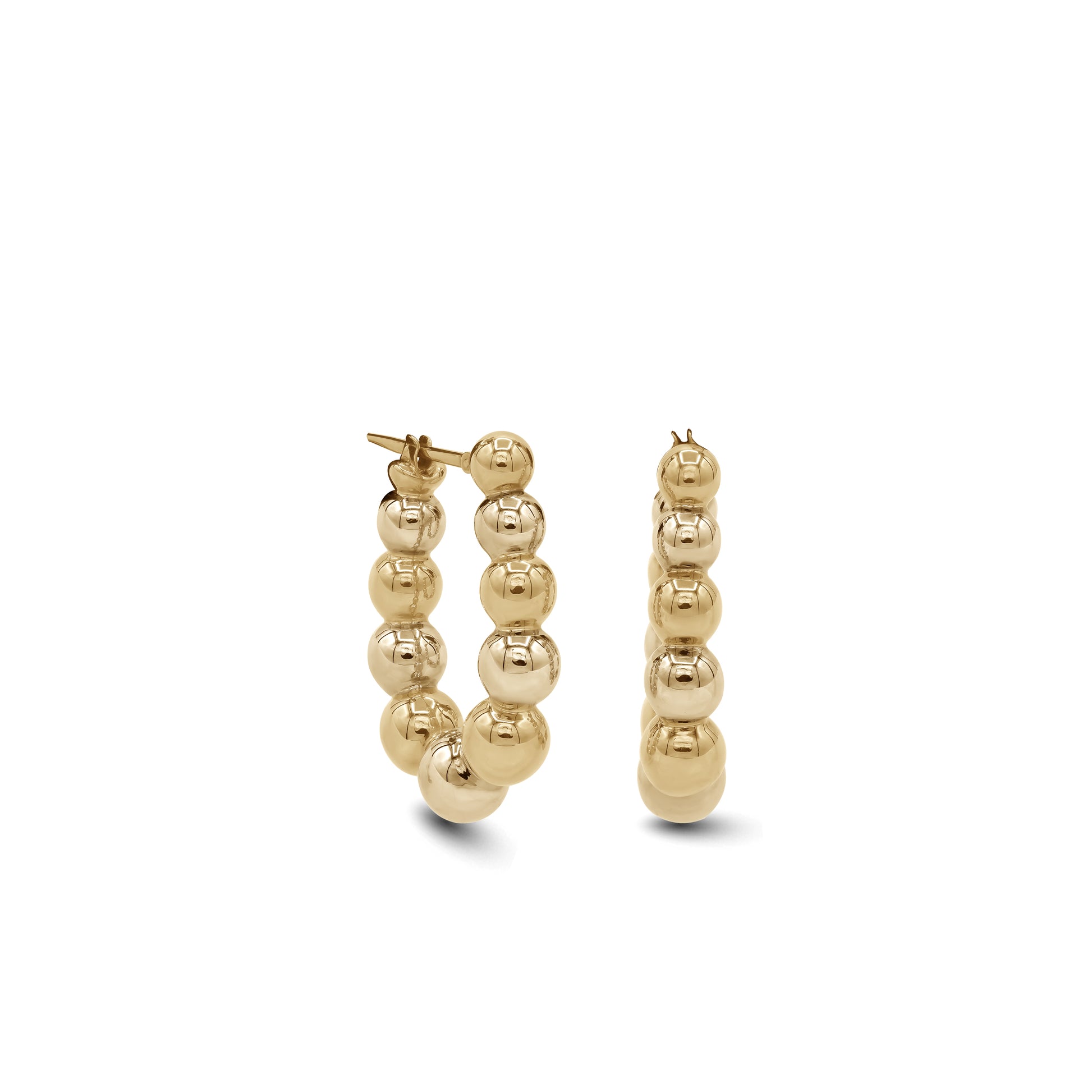 - Timeless round-bead hoop design