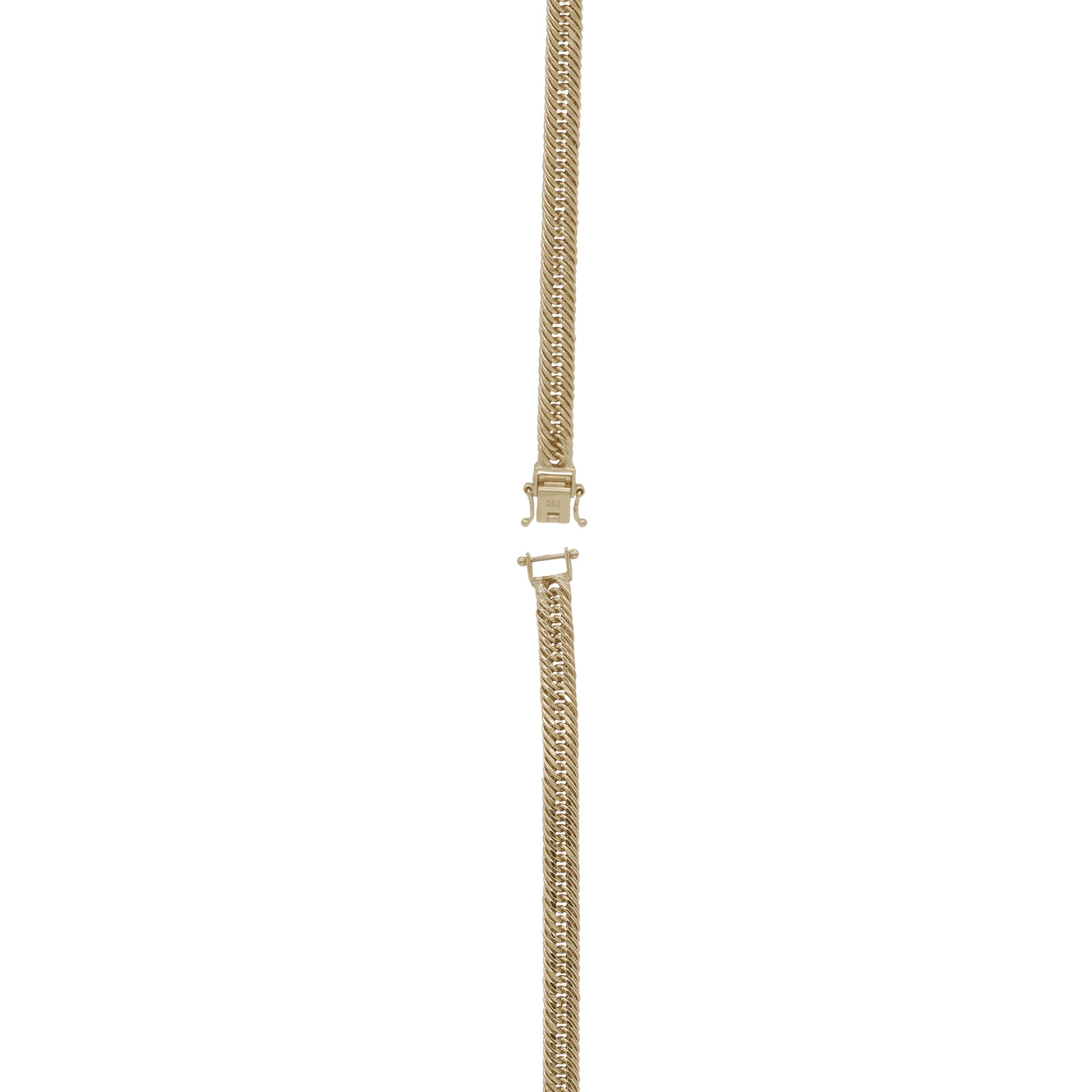 The Herringbone Bracelet embodies classic elegance. Its flat, fluid structure lays beautifully on the wrist, making it ideal for both everyday wear and elegant occasions.