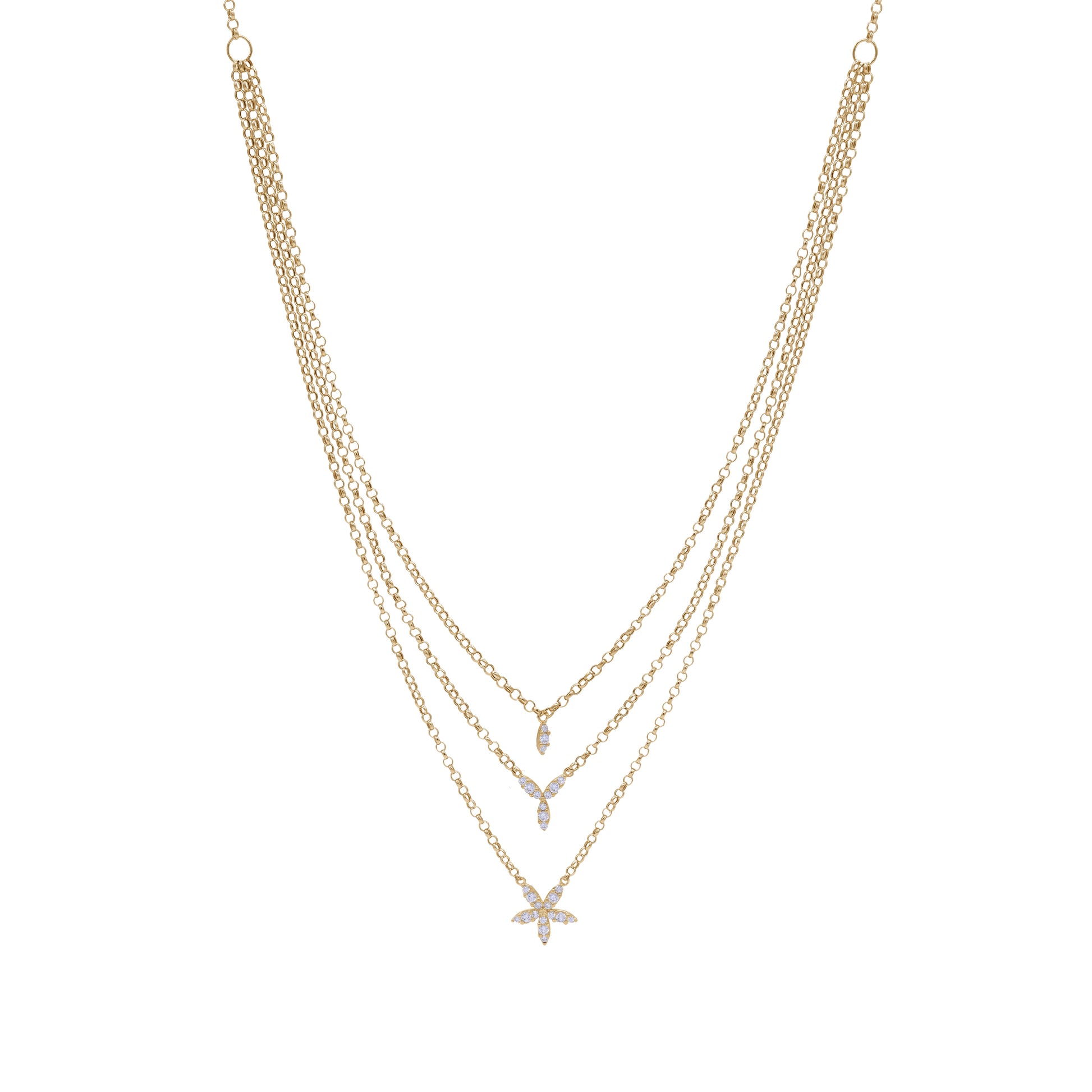 18K Gold Triple Layer Flower Necklace | Elegant Layered Pendant | Jamal Al Muhra