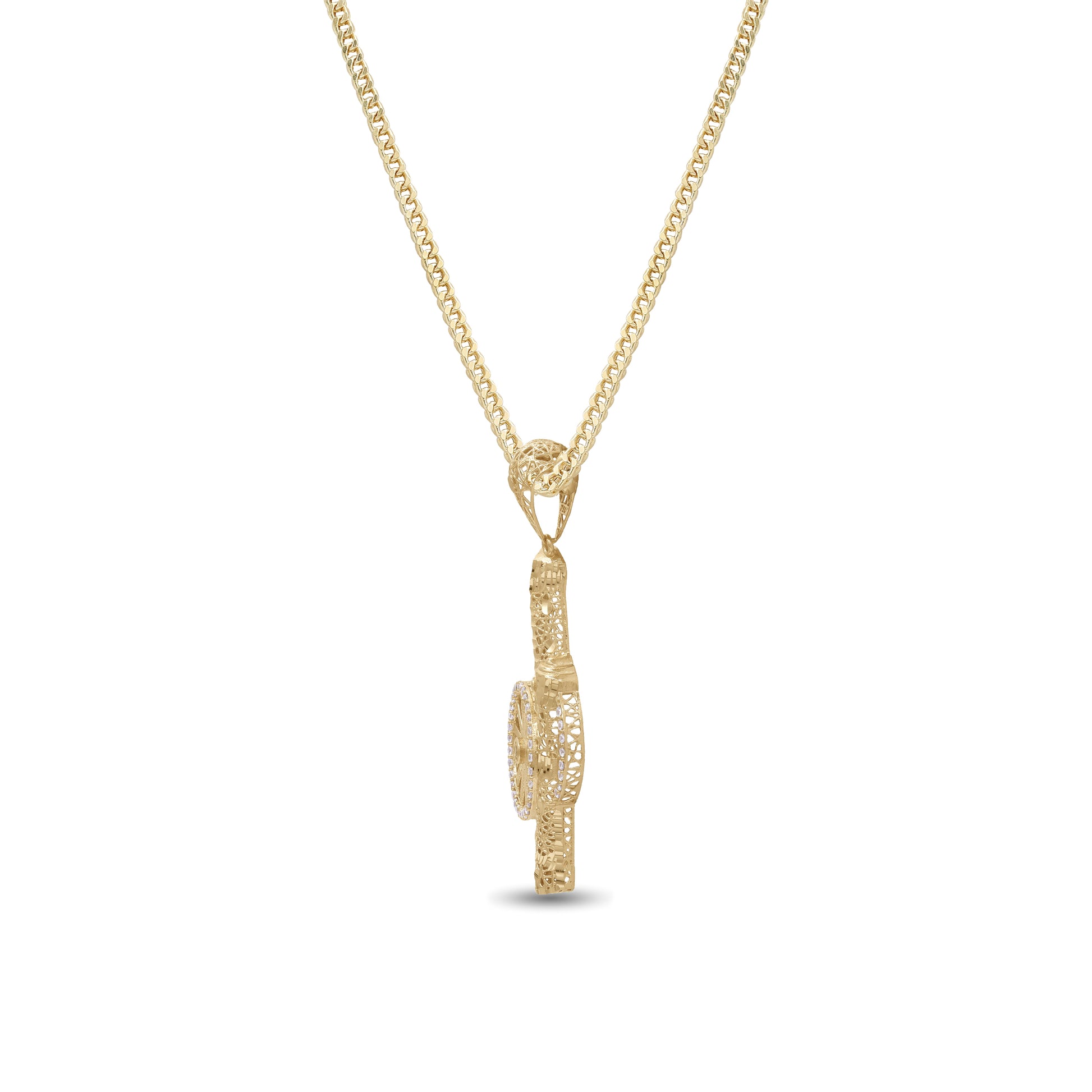 18k Gold Cannon Wheel Filigree Pendant Necklace