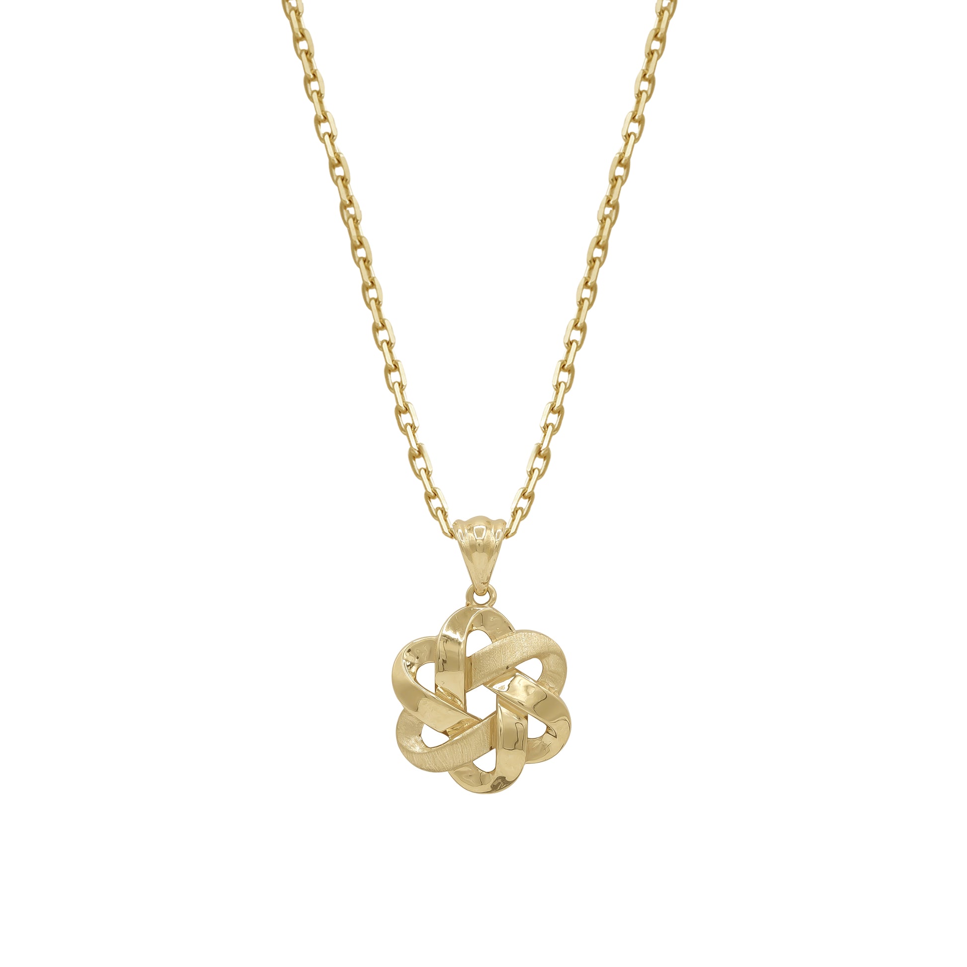 18k Yellow Gold Knot Pendant Necklace | Lucky Interlocking Design