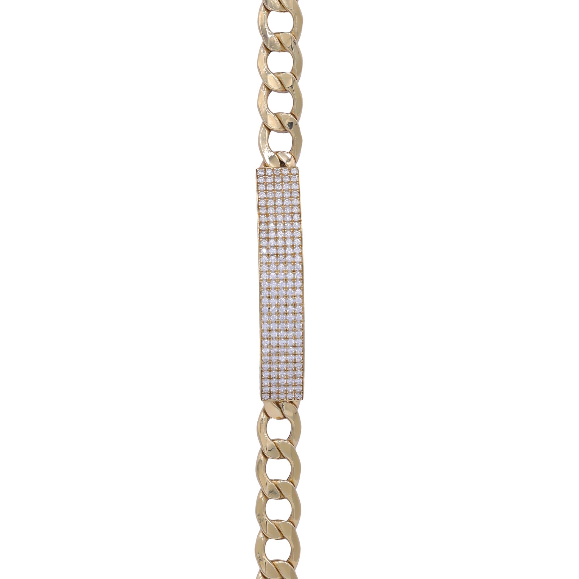 Cuban Link Pave Bar Bracelet – 18k Yellow Gold